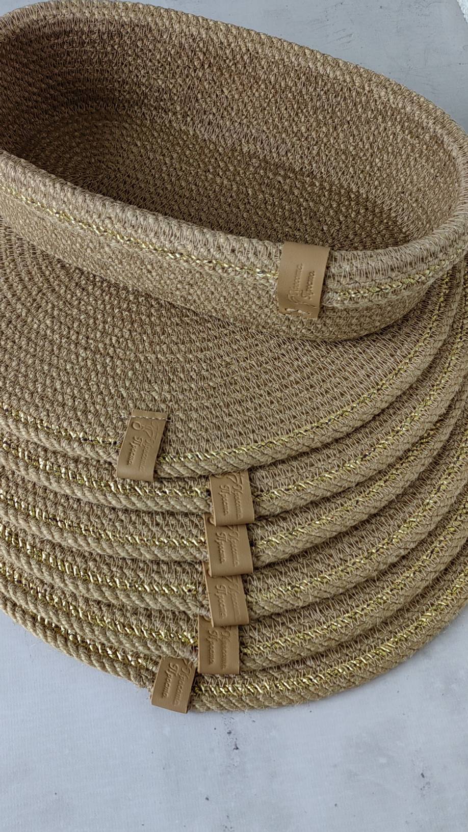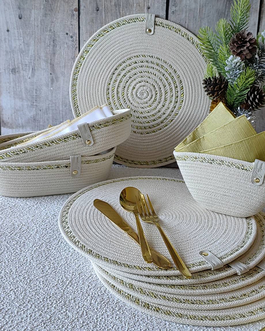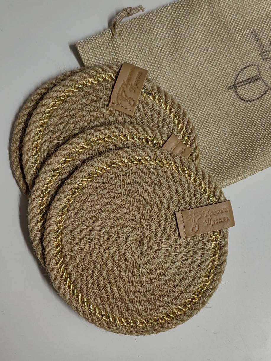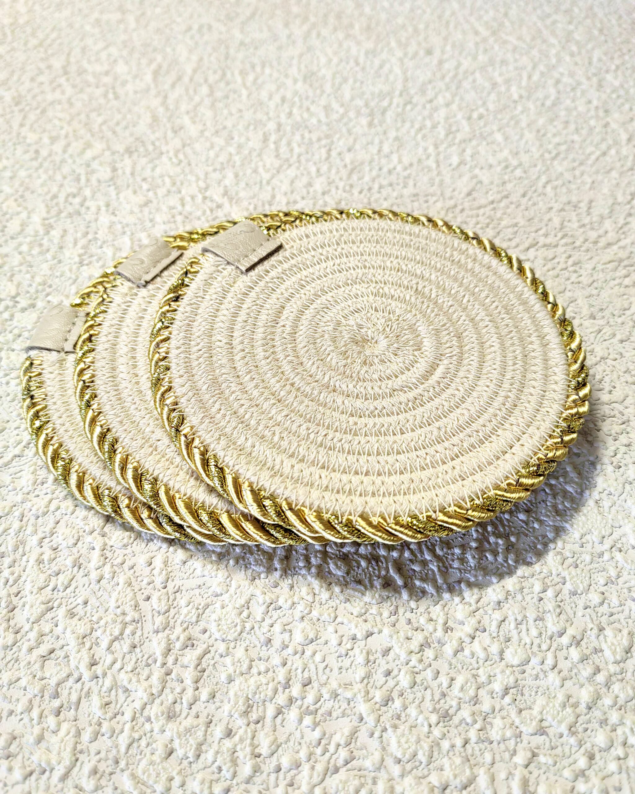 Чудесный джутовый комплект c золотой отделкой.