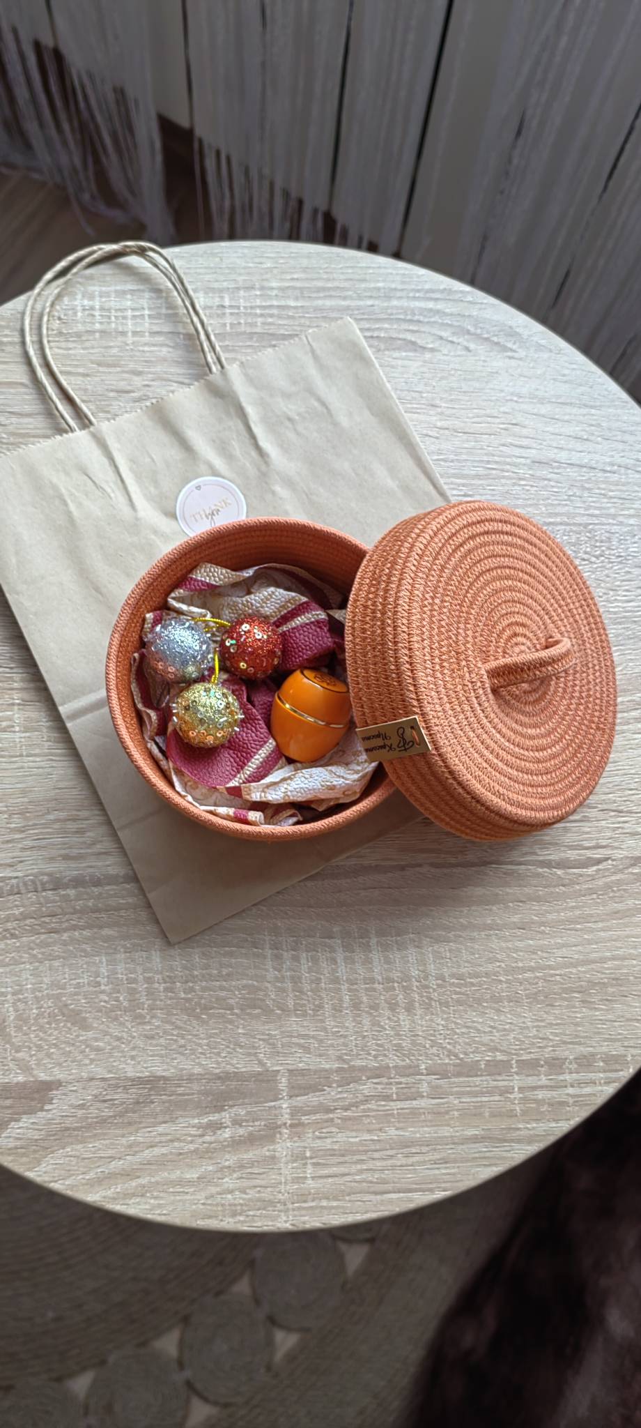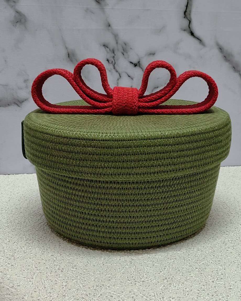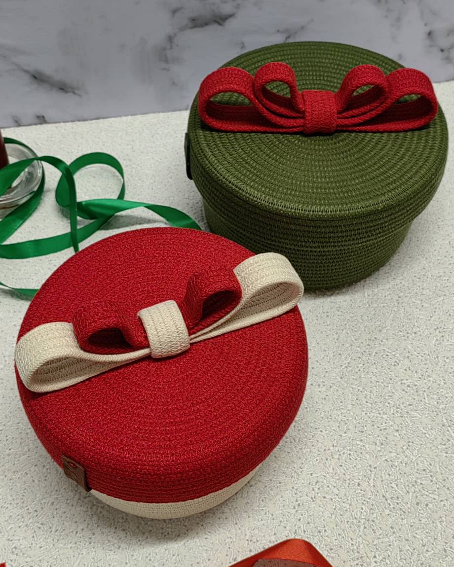 И вишенка на торте): крышка украшена серебряной сверкающей нитью. Представьте, как она будет играть на свету, добавляя корзинке нотку роскоши и праздника.