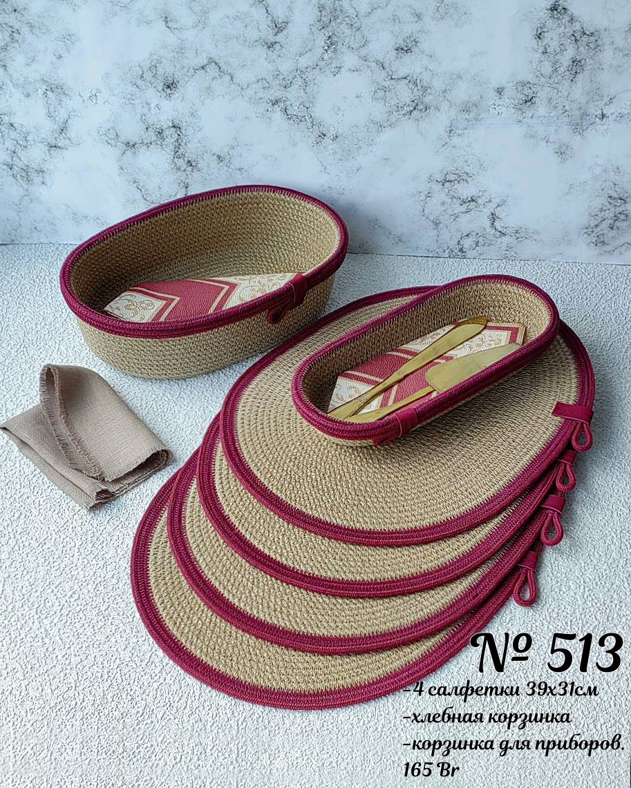Салфетки диаметр 31 см, корзинка 29х16, высота 5,5 см.
