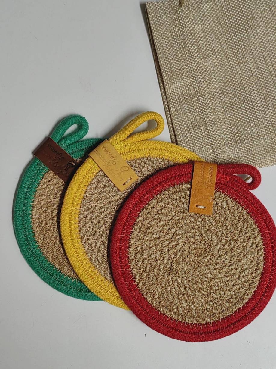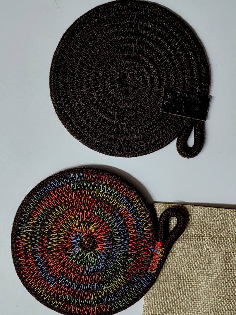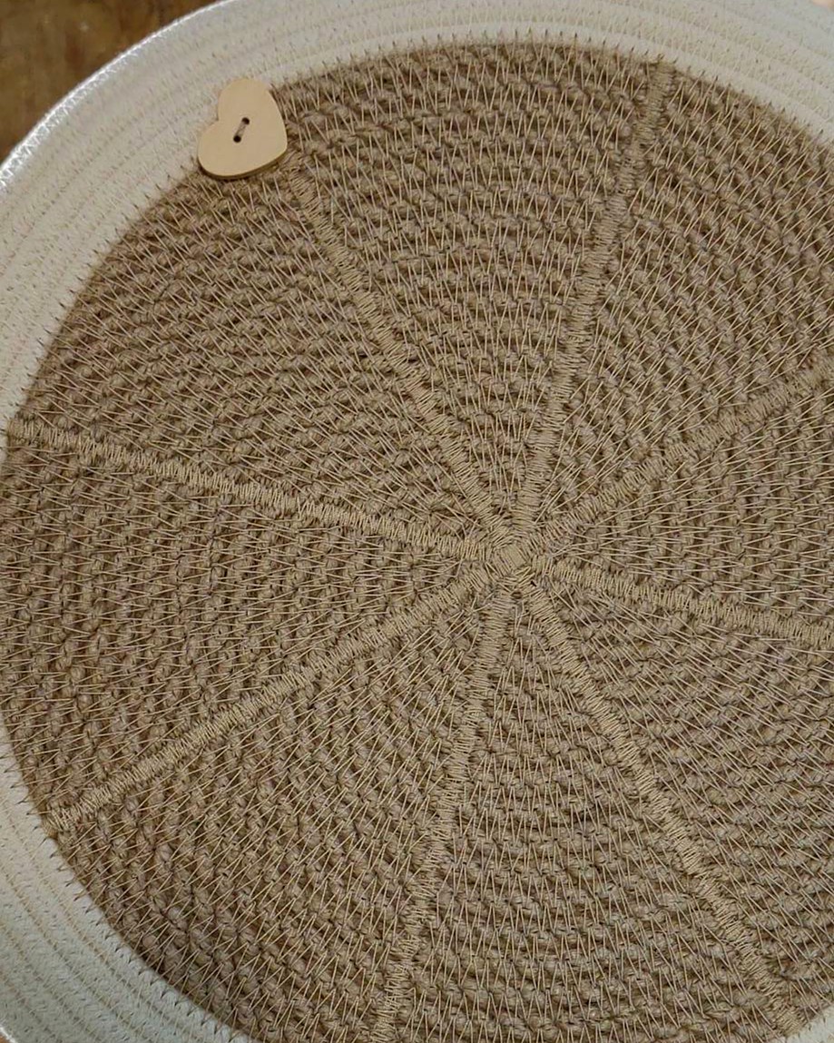 выполнен из джута и хлопкового шнура.
