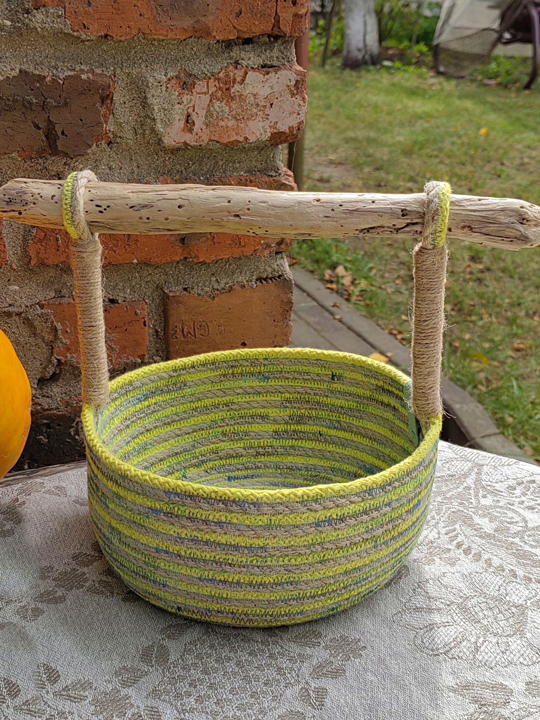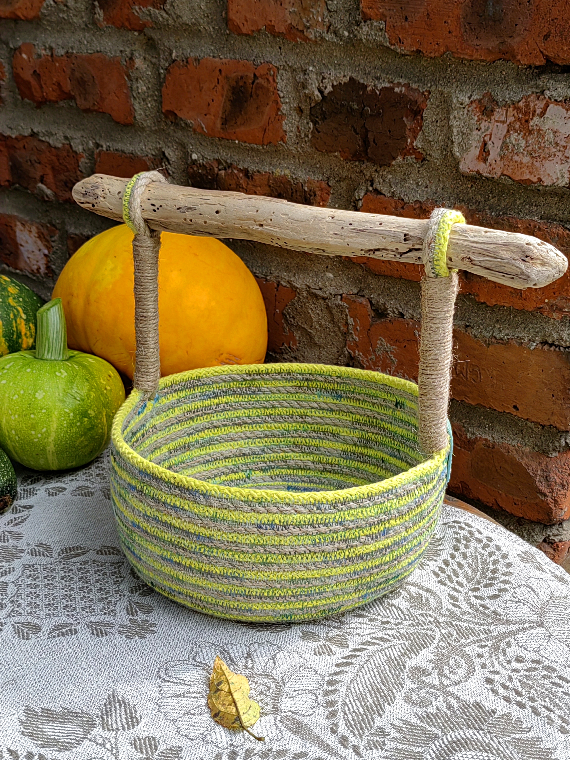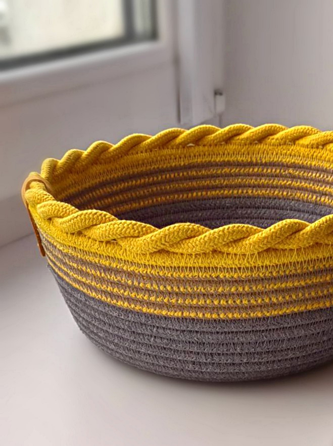 Очаровательная корзина –не просто красиво и экологично (выполнена из хлопкового шнура).