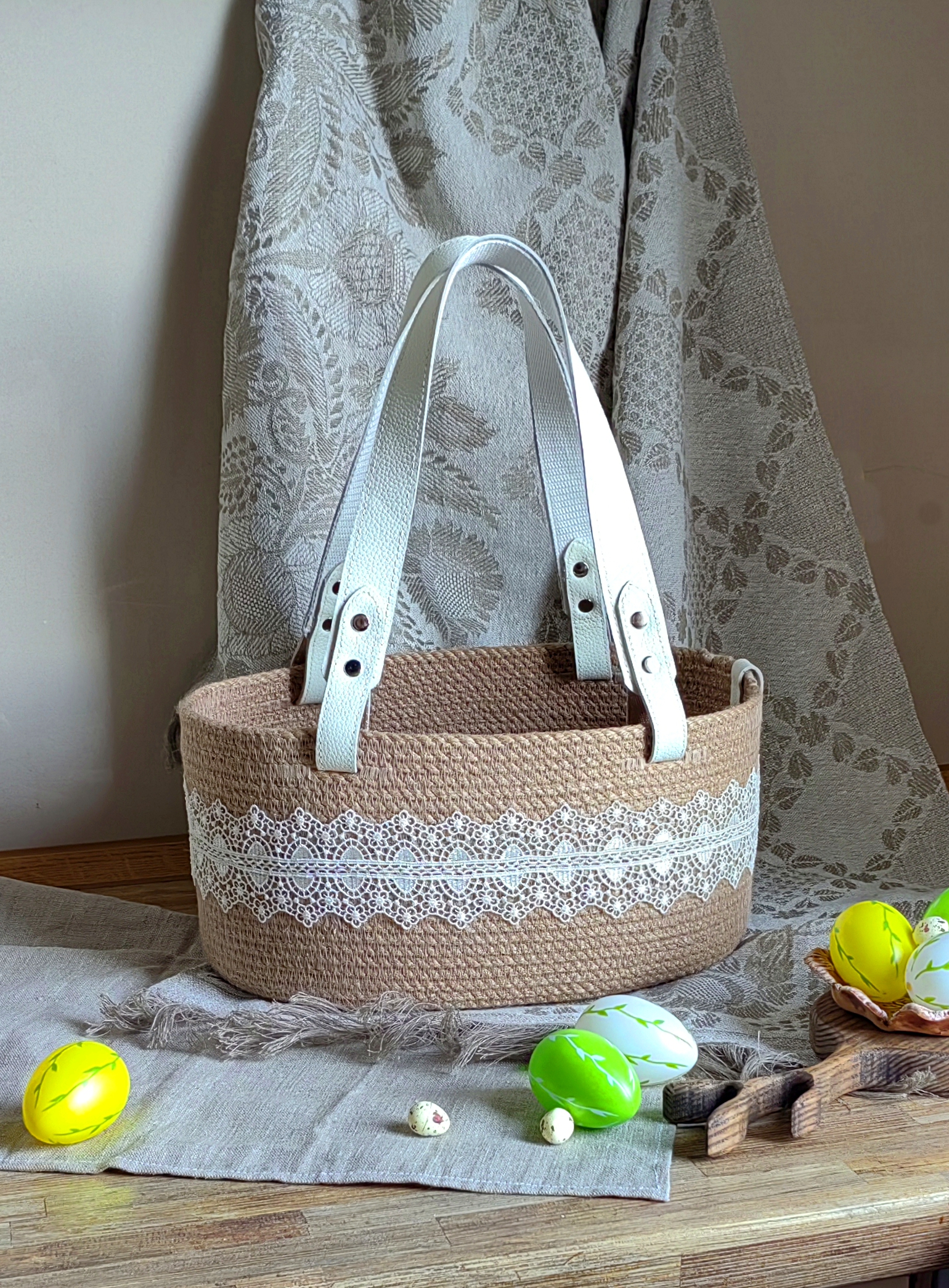 И, конечно, кожаные ручки. Они добавляют корзинке элегантности и практичности.